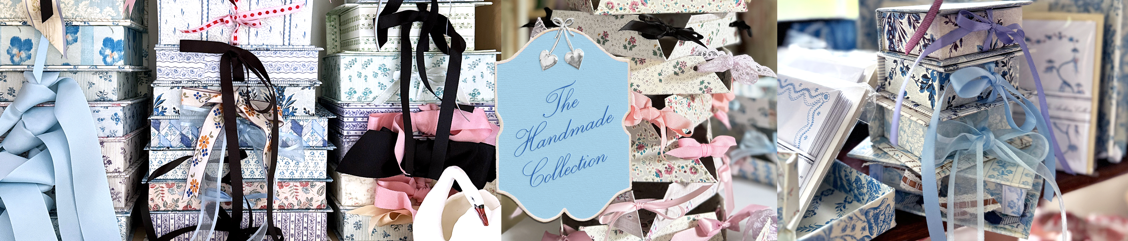 Mixed Blue Floral Desk Set with Gauzy Picot Ribbon